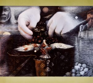 Il tema dell’esposizione di Mario d’Apuzzo, è appunto è il sogno, inteso come raffigurazione dei desideri, delle impressioni, della materia, di tutto ciò che lo circonda, varcando le barriere, sperimentando tutto ciò che c’è da sperimentare..
