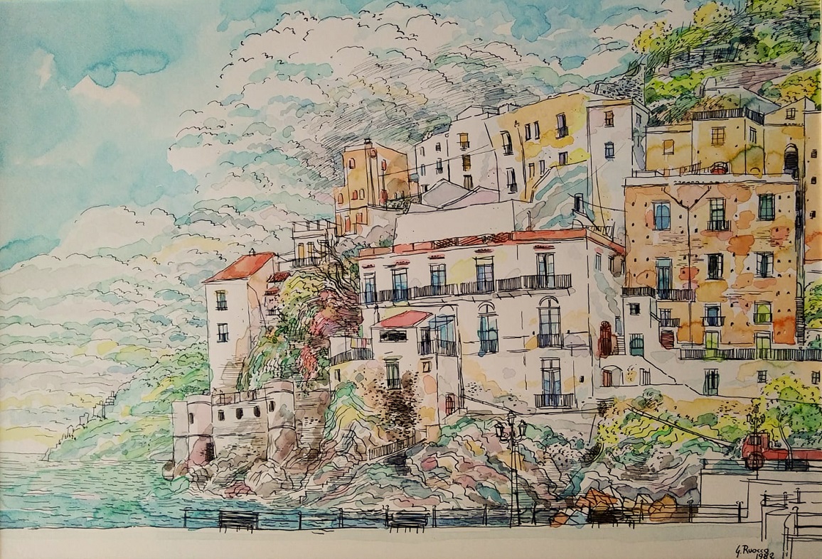 “Confessa” il pittore, nel depliant della Mostra: ”Scrivo questa presentazione delle mie opere di dipinti e ceramiche per questa estate 2022 a Minori nel salotto di casa mia, circondato dai miei quadri e da quelli dei miei amici pittori. Troneggiano su di me quadri e ceramiche di artisti salernitani e della Costa d’Amalfi”.