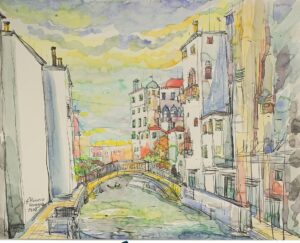 Per la pittura, aggiunge l’artista: “In generale ho continuato ad esprimermi con le consuete tecniche: acquerello, pastelli a cera ed a olio, l’acrilico e altre. Sarà evidente la mia predilezione per l’acquerello, “cavallo di battaglia” in tutta la mia attività di pittore. Tant’è che ho sentito l’esigenza di aggiungere del “colore” ad alcuni grafici eseguiti con la “vecchia” penna a pennino e l’inchiostro di china”.
