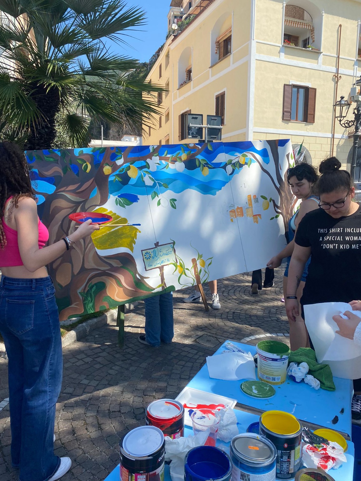 Gli studenti del Liceo artistico, “armati” di pennelli e colori hanno dipinto uno splendido trittico rappresentando il Sentiero dei Limoni, forte delle tinte, e soprattutto guidati ed ispirati dalla sensazione dello splendido paesaggio che hanno ammirato.