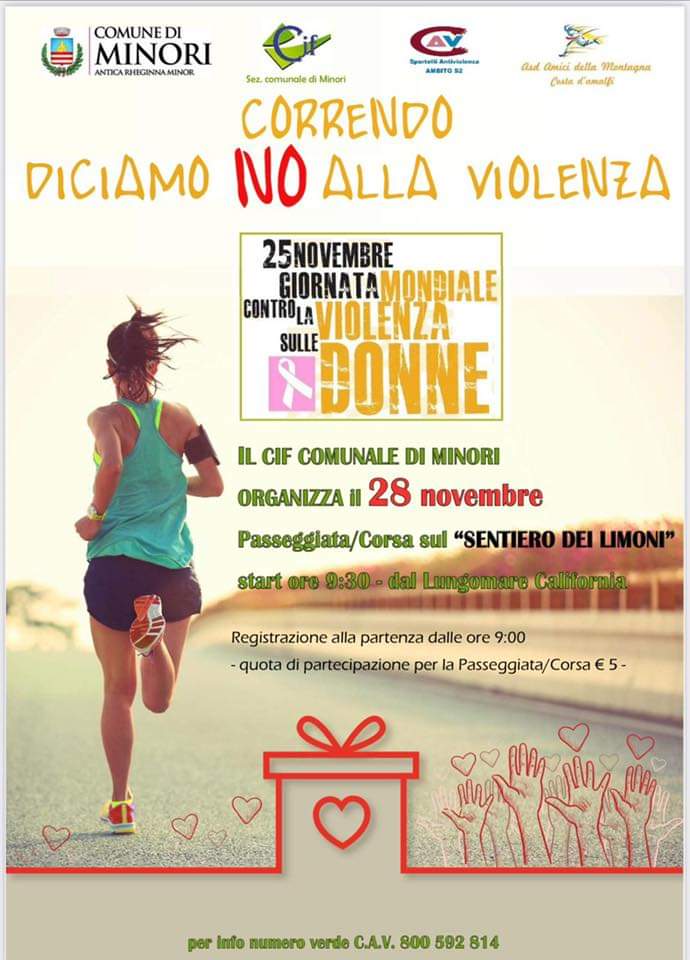 Minori, il 28 novembre il Centro antiviolenza organizza “Correndo diciamo NO alla Violenza