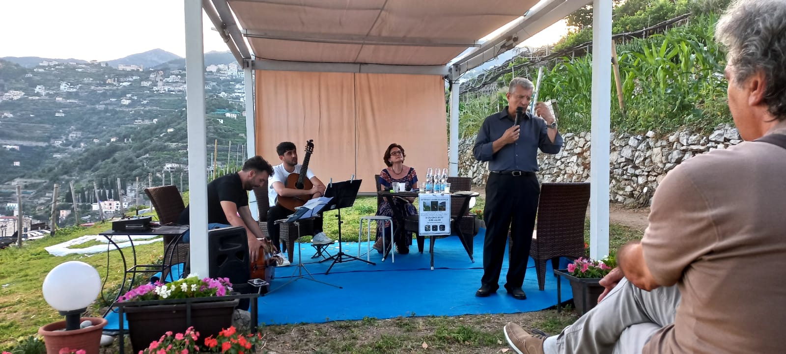 Hanno dato la propria collaborazione musicale, il violoncellista Antonio Amato e il chitarrista Emanuele Supino, che si sono distinti con l’esecuzione di alcuni brani di musica classica. E’ stato un momento di ulteriore suggestione per un evento culturale, inserito in una scenografia ambientale, di rara bellezza. Infatti, il pubblico ha potuto ammirare un paesaggio stupendo, con lo sfondo del mare reso ancora più affascinante dell’incipiente crepuscolo che nelle prime ombre della tarda primavera rende ancora più romantica il paesaggio di Ravello sullo sfondo.