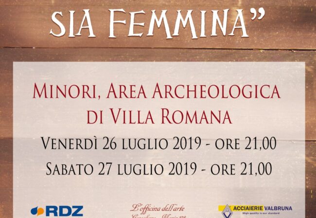 Sabato 27 luglio, alle ore 21, nell’Area archeologica della Villa Romana di Minori si terrà il musical “Speriamo che sia femmina” a cura dell’Associazione Aliestese di Vittorio Veneto.