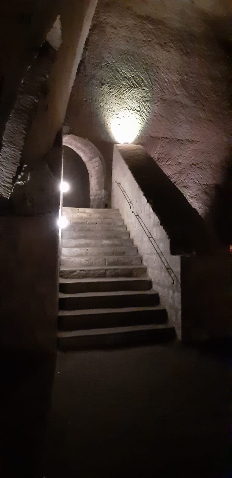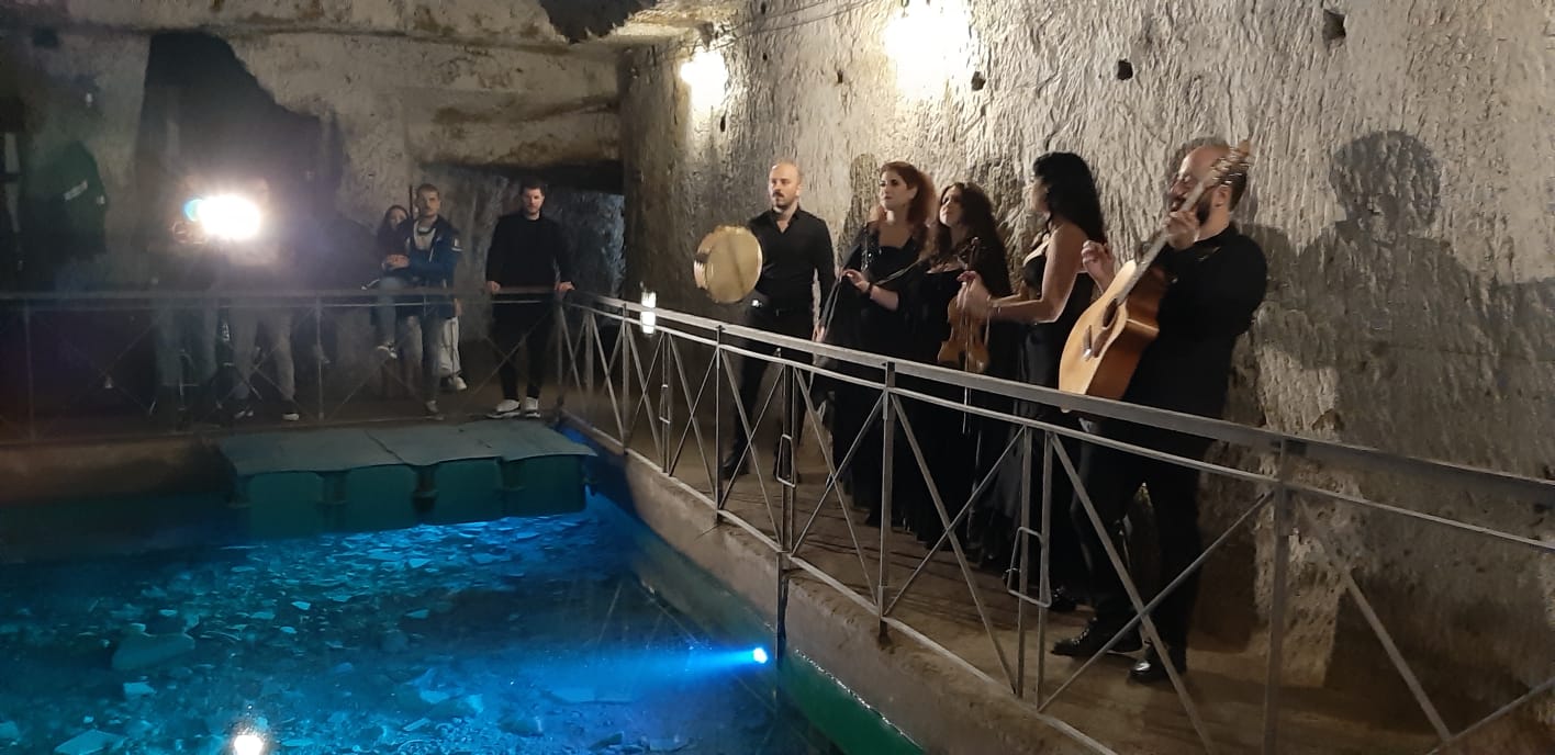 Un passaggio tra la città di sopra e quella di sotto, dove l’acqua scorre tra le solide e fredde pareti di tufo giallo, in cui le luci sembrano voler giocare a nascondino con le ombre, dove si possono vivere emozioni ed esperienze sensoriali uniche.