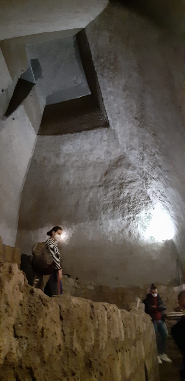 Si può vedere il tufo, asportato con mani e scalpelli e tagliato a piccoli blocchi che venivano portati in superficie.