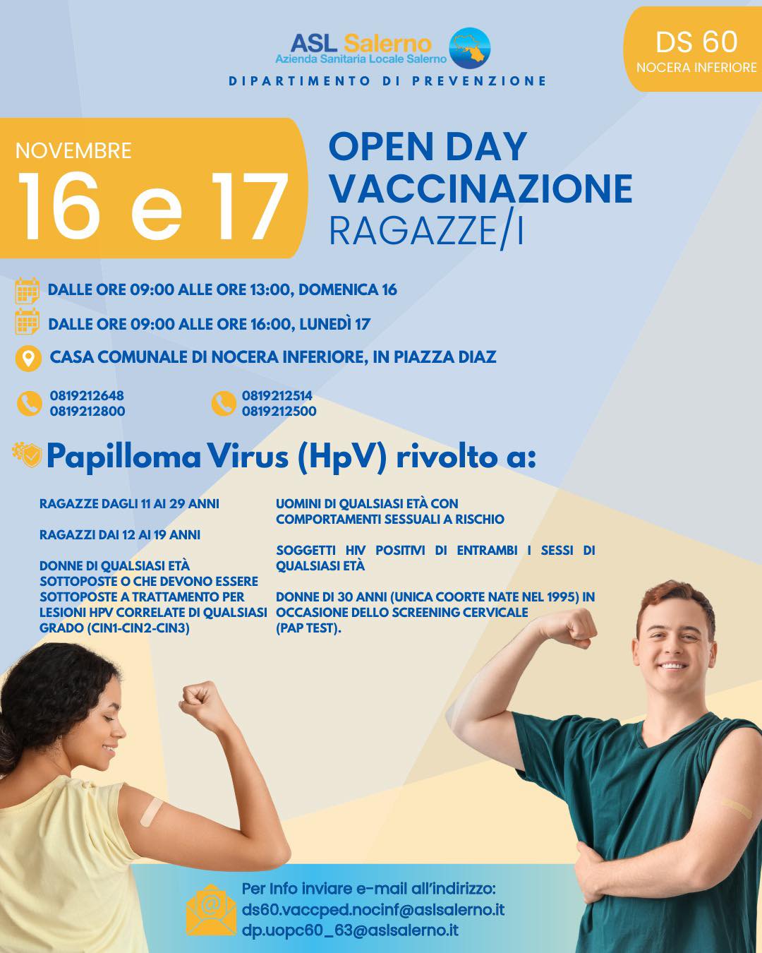 Il 16 e 17 novembre a Nocera Inferiore vaccinazioni gratuite e consulenze sull’HPV in Piazza Diaz