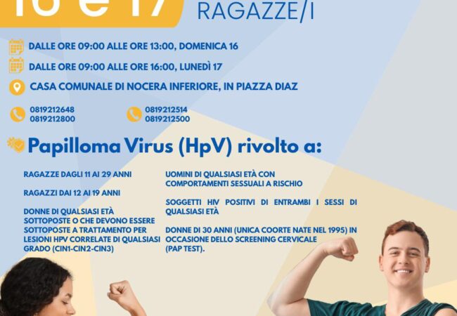 Il 16 e 17 novembre a Nocera Inferiore vaccinazioni gratuite e consulenze sull’HPV in Piazza Diaz