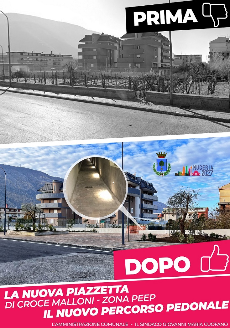 «Quando abbiamo immaginato un progetto che potesse dare all’area PEEP una nuova dimensione urbana, abbiamo pensato ad una piazzetta con del verde ed una grande seduta centrale, ma soprattutto ad un percorso pedonale che desse dà la possibilità a tanti cittadini anziani, a tanti bambini, di poter utilizzare in sicurezza una stradina di collegamento, illuminata di sera, per poter andare dalla zona PEEP a Croce Malloni – spiega Cuofano – L’area PEEP prende forma attraverso un altro spazio riqualificato che non c’era prima e che va ad aggiungersi all’area sgambamento per i cani aperta ormai da quasi un anno. Stiamo immaginando anche di sistemare l’area giostrine per completare il programma che riguarda questa zona e che oggi può contare su spazi nuovi da rispettare, preservare e manutenere anche grazie alla collaborazione dei cittadini. Anche qui siamo intervenuti riqualificando gli spazi non solo per renderli più belli ed ammagliarli all’abitato, ma soprattutto per renderli funzionali alla socialità ed agli spostamenti quotidiani di tanti cittadini».