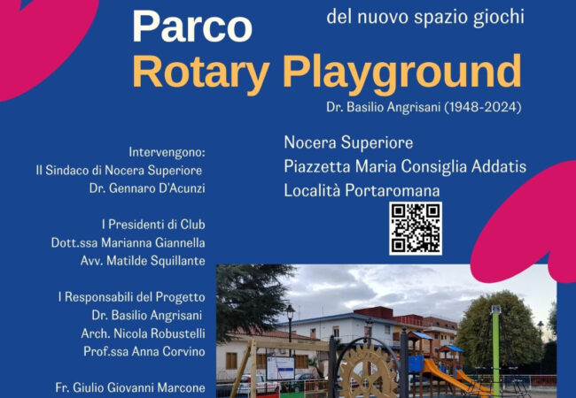 La realizzazione del Playground è stata possibile grazie alla donazione del Rotary Club Nocera Inferiore Apudmonten, in collaborazione con il Comune di Nocera Superiore, con il contributo di numerosi club Rotary e Rotaract del territorio e del Distretto 2101. Un esempio di sinergia tra istituzioni e associazioni impegnate nel promuovere iniziative a beneficio della collettività.