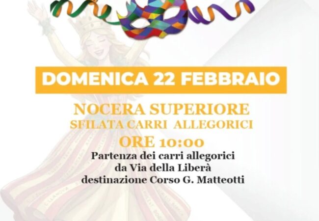 Nocera Superiore si prepara a vivere una domenica di festa e colori con la tradizionale sfilata dei carri allegorici, in programma il 22 febbraio 2026. L’evento, inizialmente previsto per sabato 14 febbraio, era stato rinviato a causa del maltempo che aveva impedito lo svolgimento della manifestazione. Come si legge nel comunicato ufficiale, «c’è grande attesa per la tradizionale sfilata dei carri allegorici che domenica 22 febbraio 2026 animerà la città con un’esplosione di colori, maschere e spettacolo» .