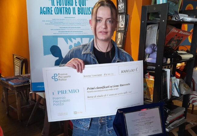 Nella prima edizione del Premio Pierpaolo Polizzi, che si è svolto nei giorni scorsi a Somma Vesuviana, l’alunna Federica Mignoli, originaria di Caggiano, frequentante la classe 1D, ha conquistato il primo posto, nella sezione “racconto”, trionfando tra tutti gli alunni delle Scuole Secondarie di Secondo Grado che vi hanno preso parte. Oltre 300 i partecipanti.