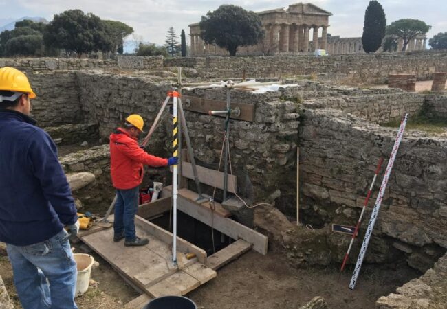 Al Parco Archeologico di Paestum riprende lo scavo della casa greca alle spalle del tempio di Nettuno. Ad essere indagato è un pozzo per il rifornimento delle acque, già individuato durante precedenti campagne di scavo. La struttura si trova nella parte esterna di un’abitazione costruita verso il 500 a.C., nello stesso periodo al quale risalgono il tempio di Athena e la celeberrima tomba del Tuffatore. Lo scavo si inserisce in un più ampio programma di ricerche portate avanti dal Parco Archeologico di Paestum e volte a indagare le più antiche abitazioni dell’antica Poseidonia, tuttora poco conosciute rispetto al resto della città magno-greca.
