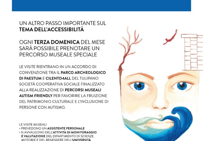 L’iniziativa è realizzata grazie a una collaborazione a tre voci che vede coinvolti il personale dei servizi di accoglienza e di didattica del Museo, la società cooperativa Tulipano – Cilento4all e il Dipartimento di Scienze Motorie e del Benessere dell’Università degli Studi di Napoli “Parthenope”, da sempre impegnato nella promozione di iniziative che mirano all’inclusione sociale.
