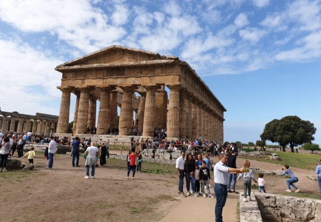 Inoltre, negli scavi si è svolta la seconda tappa del Festival dell’Essere con la Direzione Artistica di Vittorio Sgarbi. Più che soddisfatto il direttore del Parco Archeologico di Paestum Gabriel Zuchtriegel che esprime il suo sentito ringraziamento a tutto il personale del Parco che è riuscito a fronteggiare e gestire un numero così elevato di visitatori.