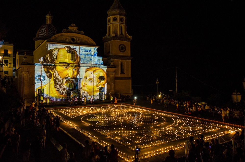 La Compagnia francese La Salamandre tornerà quest’anno a stupire con un entusiasmante spettacolo di fuoco, dal titolo Le Songe de Promethee, il giorno 31 luglio. Dal 1 al 3 agosto sarà la volta della tradizionale accensione dei lumini intorno al decoro del pavimento maiolicato di piazza San Gennaro, con performances di fuoco, fiamme e proiezioni architetturali con la tecnica del videomapping.