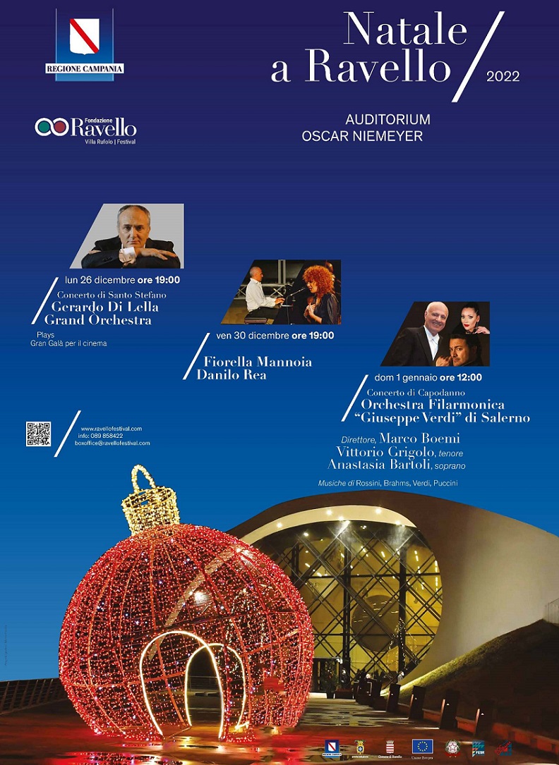 In occasione delle festività la Fondazione Ravello riapre l’Auditorium Oscar Niemeyer alla musica con tre appuntamenti firmati dal direttore artistico Alessio Vlad e sostenuti dalla Regione Campania che impreziosiscono il cartellone natalizio della Città della Musica.