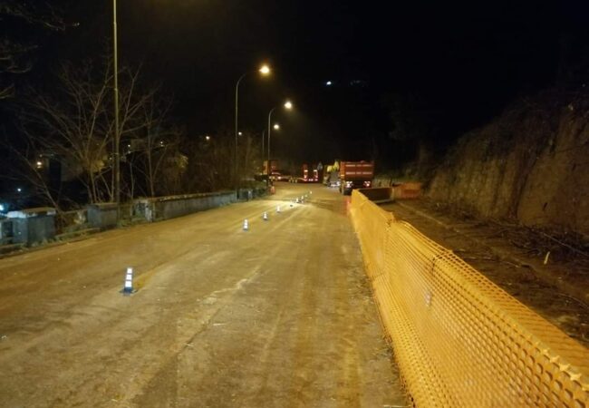 La strada, dopo le operazioni di pulizia e messa in sicurezza, è ora agibile, anche se è stata creata una strettoia nel luogo della caduta delle frane.