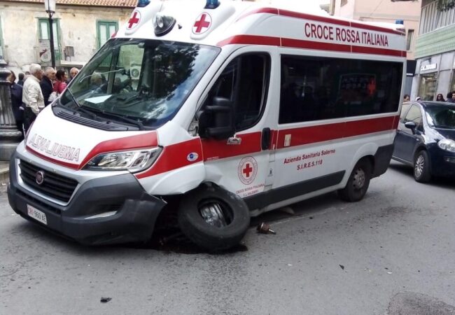 Paradossale incidente questa mattina a Salerno, nel quartiere di Torrione, che ha visto coinvolta un’ambulanza della Croce Rossa.