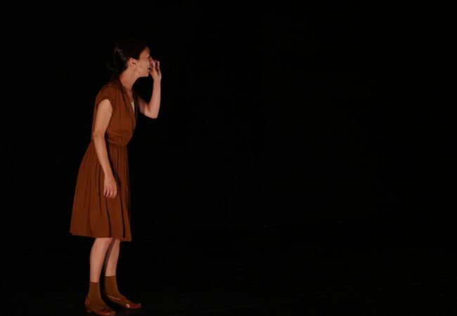 “Sergio” è una voce sola in una scena vuota, quella di Francesca Sarteanesi, finalista Premi Ubu 2021 come miglior attrice. Lo spettacolo è un monologo moderatamente brillante con qualche piccola impurità tendente all’opaco su un piccolo frammento di una vita qualsiasi, ma anche un dialogo intimo e affettivo o un colloquio interiore a cui il pubblico assiste come se stesse origliando una telefonata: si possono ascoltare soltanto le parole di chi è presente, mentre bisogna provare a riempire da soli, per dare un senso al discorso, le parole di chi si trova dall’altro lato della cornetta, guidati soprattutto dalle sensazioni che ci comunica chi viene “spiato”. Il tono della sua voce, le reazioni, la scelta delle priorità nei discorsi: “Quando s’andava a mangiare il pesce, Sergio. Alla tu mamma gli garbava tanto andà a mangià il pesce là, come ci si chiamava? Come era il ristorante? Come si mangiava. Te hai sempre scelto tutto giusto te. Tutto. Hai sempre avuto dei gusti, sempre avuto gusto anche nel mangiare, sempre le scelte giuste. Tutti prendevano il branzino, te lo ricordi? Noi si prendeva le triglie” oppure: “Scusami tanto Sergio, ma il sagittario non è mai contento. Se hai sposato un sagittario non è certo colpa tua”.