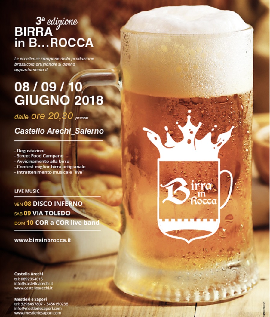 Manca davvero poco alla terza edizione di Birra in B…Rocca (8-9-10 Giugno – Castello Arechi di Salerno), la kermesse che esalta la “missione di qualità” dei birrifici artigianali campani. Si arricchisce decisamente l’offerta allestita dall’organizzazione, che punta ad alzare l’asticella delle novità.