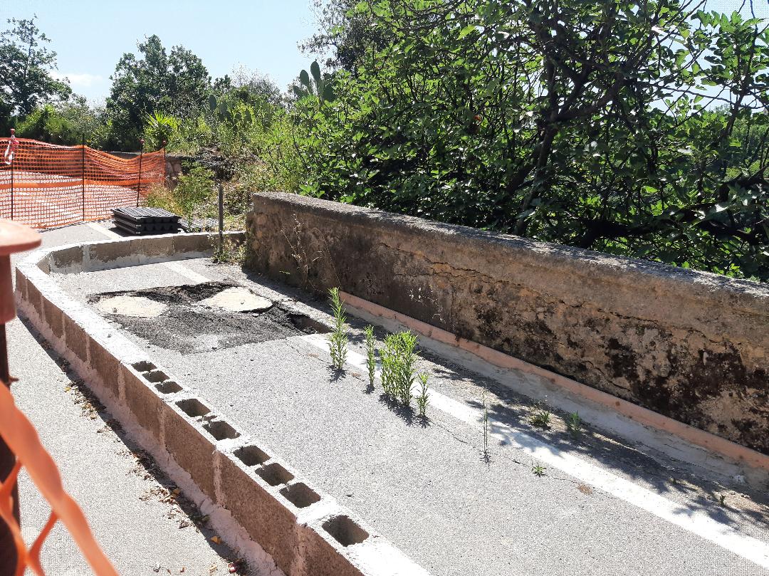 A quasi 6 mesi tutto tace. La carreggiata è sempre ristretta, i turisti e i fedeli, oltre che i residenti, continuano ad arrivare in zona, le erbacce stanno crescendo rigogliose nel tratto interdetto alla circolazione, ma novità non se ne conoscono. Non si sa se c’è un progetto e quando verrà attuato.