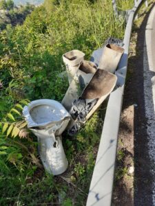 “Tali materiali (rifiuti), venivano portati su dalle scarpate e posti a bordo della carreggiata per essere poi verosimilmente rimossi da chi di competenza. Nei giorni successivi, sempre precedenti al 30 aprile, a bordo della carreggiata venivano rilevati dei rifiuti speciali (canne fumarie in eternit) che come è noto contengono “Amianto”.