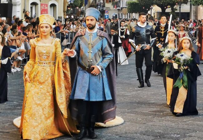 Una folla straripante, proveniente da ogni parte d’Italia, ha preso d’assalto lo splendido centro storico di Teggiano, per partecipare ai festeggiamenti per le nozze tra la Principessa Costanza e il Principe Antonello Sanseverino.