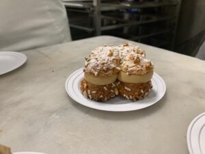 Il tour del Campione del Mondo di Pasticceria ha toccato diverse tappe: una sosta da Antichi Sapori dove ha ammirato e apprezzato la cucina attenta e ricercata di chef Giuseppe Francese. Prima di lasciare la “Montiera Amalfitana”, immancabile visita al laboratorio del Maestro pasticciere Sal De Riso, dove, grazie alla collaborazione del Maestro AMPI Paolo Sacchetti, di Raimondo Esposito e dello staff, è nata una nuova dolcissima creazione il “Paris Brest per Tramonti”, una rivisitazione del prelibato dessert francese in esclusiva per Tramonti, con crema di nocciole di Giffoni profumata al concerto d’erbe di Tramonti e croccante pralinato di noci e nocciole.