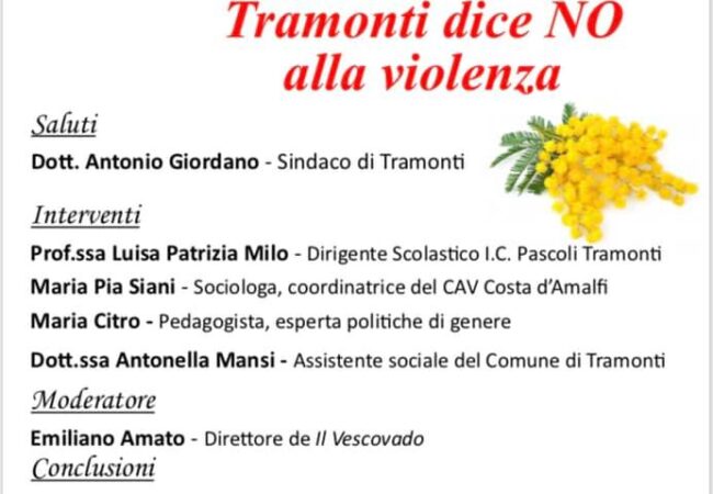 Tramonti dice no alla violenza. E lo fa con un convegno organizzato in occasione della Festa della Donna, che si terrà sabato 9 marzo alle 09.30 in Piazza Treviso, davanti al Municipio.