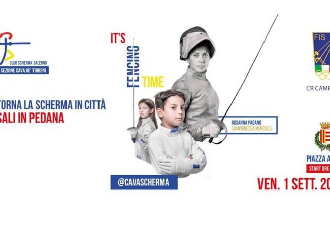 L’arma bianca protagonista per una serata a Cava de’ Tirreni. Venerdì 1° Settembre “it’s a fencing time!- è l’ora della scherma”. Cava de’ Tirreni si anima di spirito sportivo: nel suggestivo scenario della restaurata piazza Abbro, dalle ore 18.00, torna la nobile arte della Scherma Sportiva a Cava de’ Tirreni.