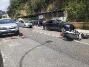 Paura nella tarda mattinata sulla ex Strada Statale 18 dove, intorno alle 11:00, si è consumato un incidente tra una motocicletta e un’auto e un furgone, all’altezza della frazione di Molina.