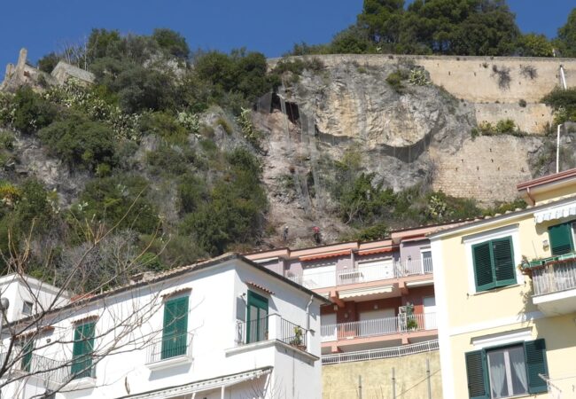 Sono iniziati gli interventi di somma urgenza per mettere in sicurezza il costone roccioso che sovrasta il Parco di via Madonna dell’Arco a Marina di Vietri sul Mare, dove il 12 febbraio una frana ha reso necessario lo sgombero di otto famiglie e la chiusura, prima totale e poi a senso unico alternato, della SS163 Amalfitana all’altezza del km 48+300.