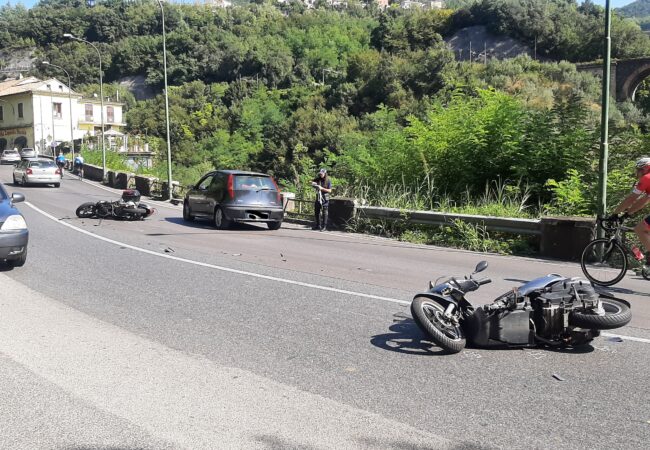 Incidente tra due motorini sulla SS 18 che collega i comuni di Vietri sul Mare e Cava de’ Tirreni. Ferite in maniera lieve le persone alla guida dei mezzi.