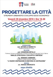 Il prossimo venerdì nella nostra città si terrà un incontro pubblico sul tema “Progettare la Città. Strumenti urbanistici e sviluppo socio-economico” organizzato dall’Associazione politico-culturale “Incontri” in collaborazione con il nostro giornale.