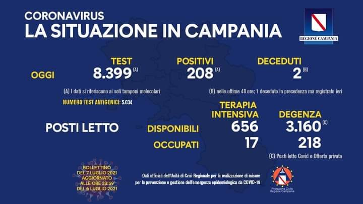 Questi i dati relativi ai casi di contagio di coronavirus alle ore 18 di ieri mercoledì 7 luglio 2021.