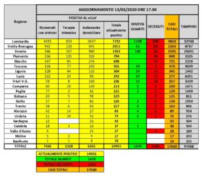 RIEPILOGO PER REGIONE AGGIORNAMENTO 13 MARZO 2020