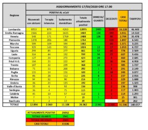 RIEPILOGO PER REGIONE 17 MARZO 2020