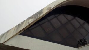 Le condizioni della copertura sono sintomatiche non solo della scarsa manutenzione, ma evidentemente dell’utilizzo di materiali inadeguati. Inoltre l’auditorium è perennemente chiuso. Talvolta, in questi anni, è stato destinato ad attività occasionali.