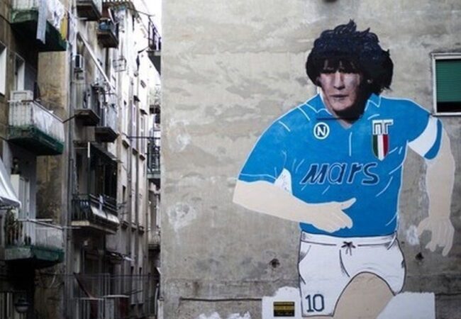 Ma solo un anno dopo i napoletani, che già spalancarono le chiese austere alle liturgie barocche, offrirono allo street artist Francisco Bortolotti, argentino anch’egli, la possibilità di dare al volto del Diego un aspetto più realistico.
