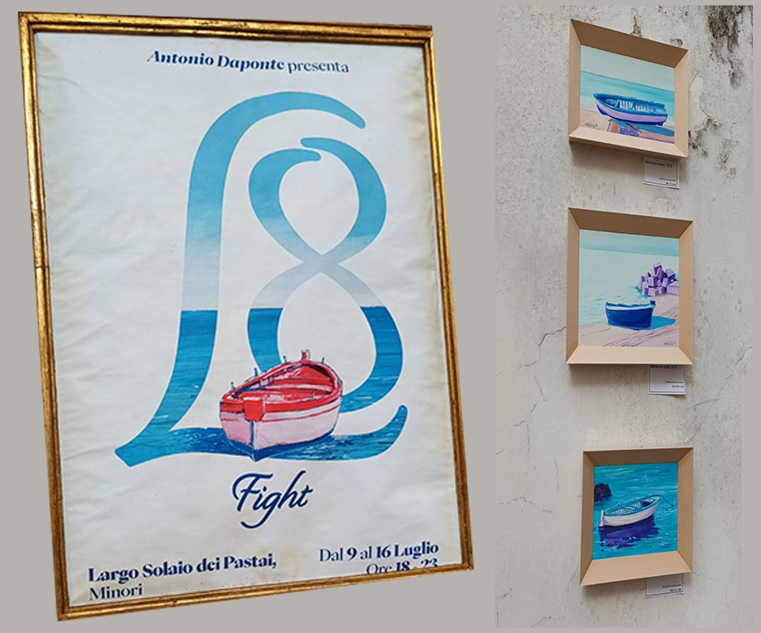 C’è sempre il mare nei dipinti di Antonio Daponte il medico pittore, che per l’ottavo anno espone i suoi lavori a Minori al Largo Solaio dei pastai (ogni sera fino al 16 luglio). Il titolo della mostra “L8 – fight” gioca con i numeri e con il desiderio (o forse la speranza) di lottare.