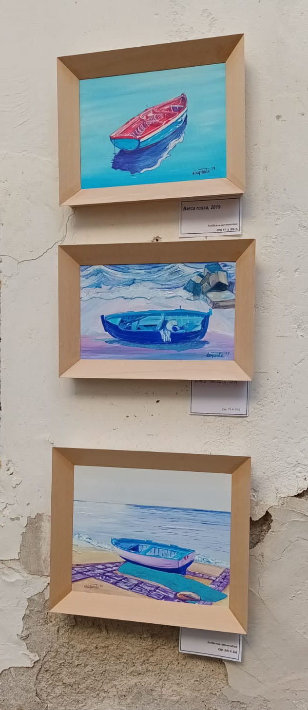 C’è forse un sottile filo che unisce le viste degli interpreti della Scuola di Maiori, i bastimenti tirati sulle spiagge di fine ‘800, che risale fino alle vedute di Virginio Quarta e di Bartolo Savo, con le barche tra i colori delle case, fino a queste, solitarie, del Daponte.