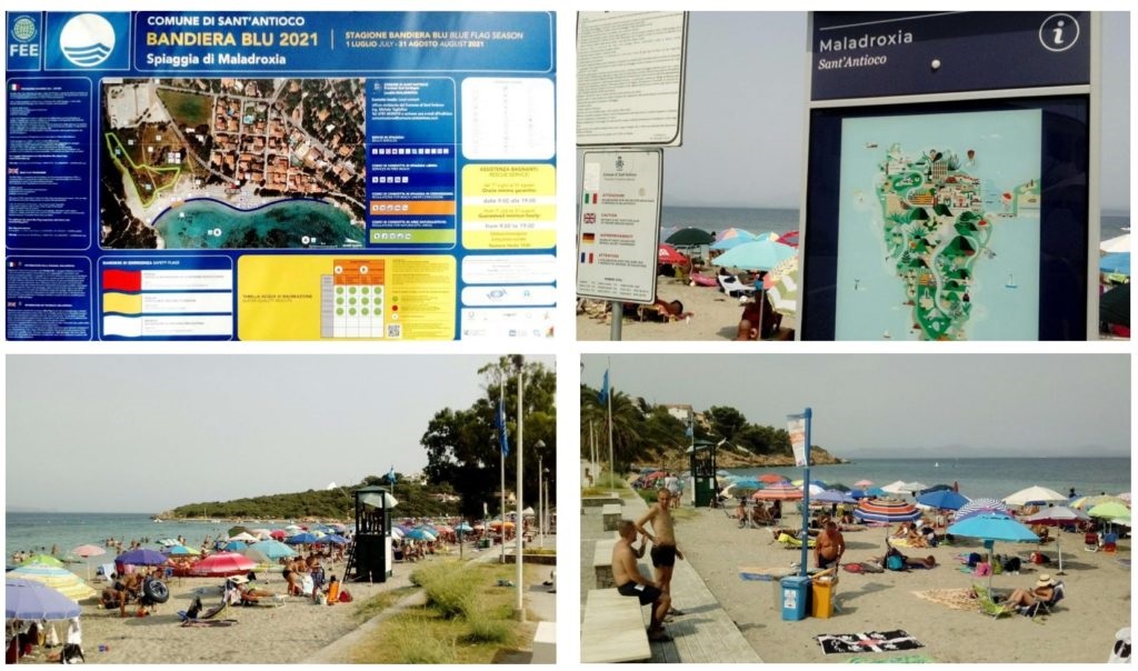 Le spiagge sono assolutamente libere e gratuite, nessuna stupida distinzione tra residenti e ospiti. Sono dotate di servizi pubblici tra i quali un bagnino e la sorveglianza. A Maladroxia un gruppo di volontari consente, gratuitamente, di raggiungere il mare anche a persone con handicap o con malattie terminali.