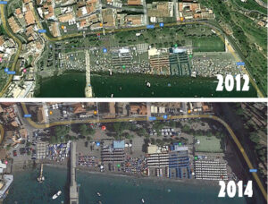 Su queste due aree il Comune consentiva comunque l’avvio di attività commerciali per il posizionamento di attrezzature balneari alla stessa società che già gestiva la Spiaggia Pubblica attrezzata e ad un altro soggetto. Tali curatori, specie nei weekend, è sotto gli occhi di tutti, pre-installano le attrezzature per garantirne l’occupazione alla propria clientela.