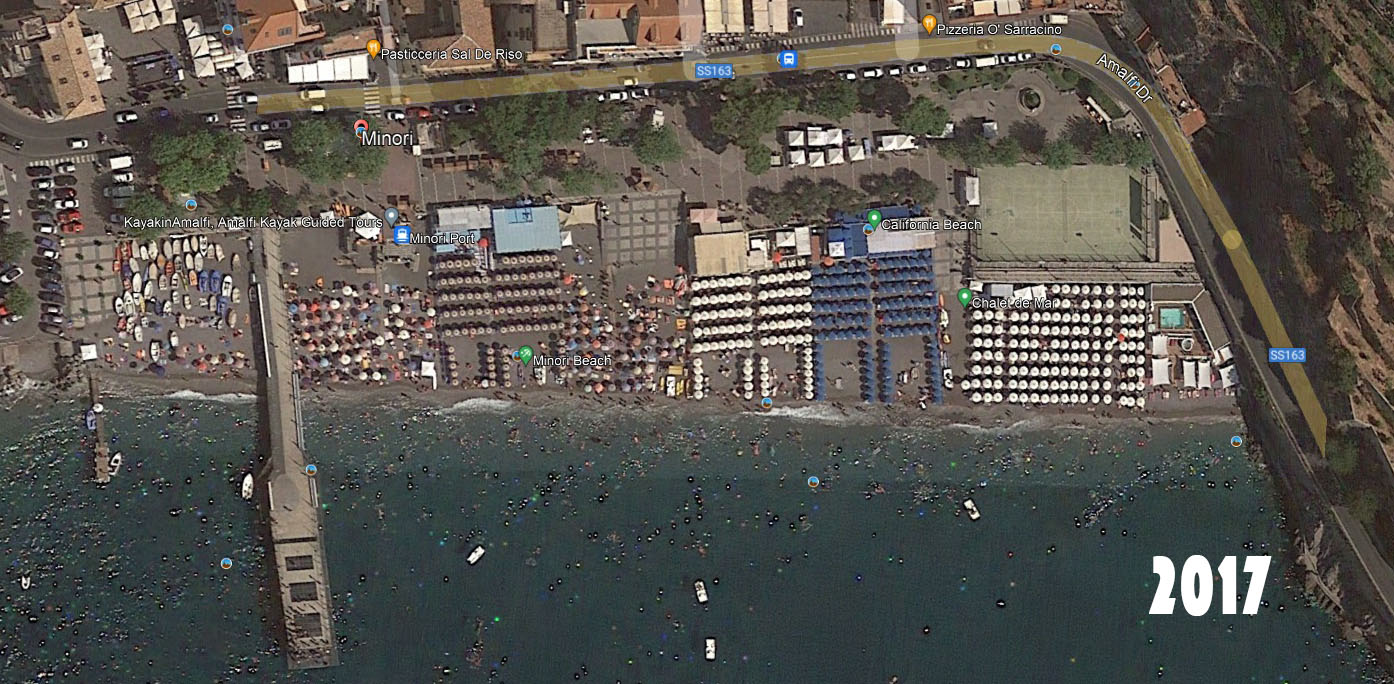 In quel momento, la spiaggia di Minori era interessata da tre concessioni “storiche” ad altrettanti stabilimenti balneari che occupavano (ed occupano) il 31% della superficie della spiaggia.
