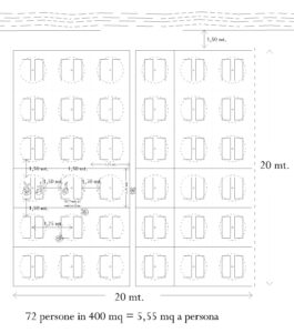 Scegliendo alcune attività a caso in quattro cittadine differenti, si può quantificare, con le inevitabili approssimazioni, che finora ad ogni persona veniva riservato uno spazio variabile tra i 3,2 e i 4,5 metri quadri.