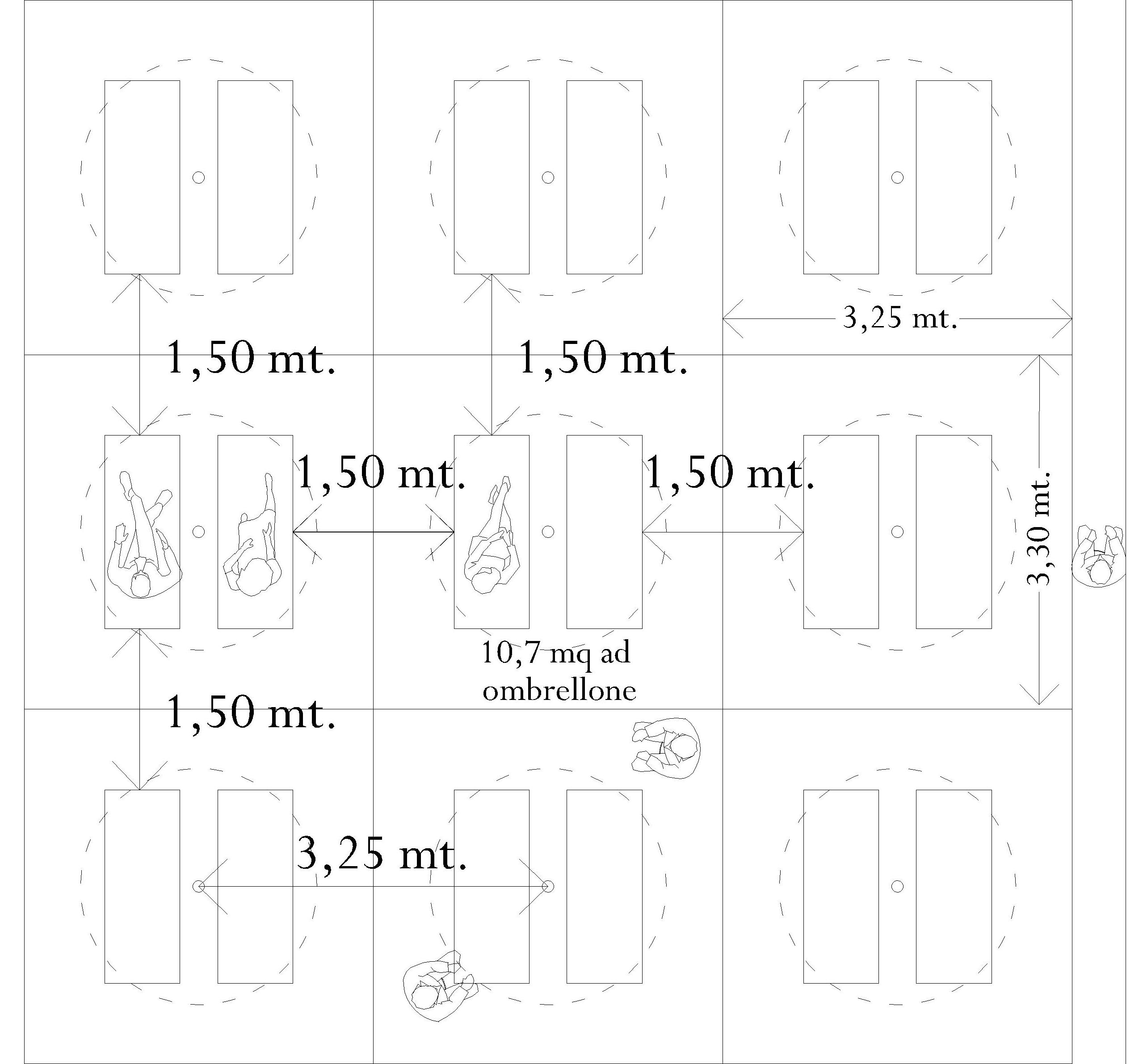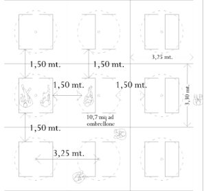 Tra i singoli ombrelloni ci sarebbe una distanza di poco più di tre metri (all’inizio si parlava di cinque metri).