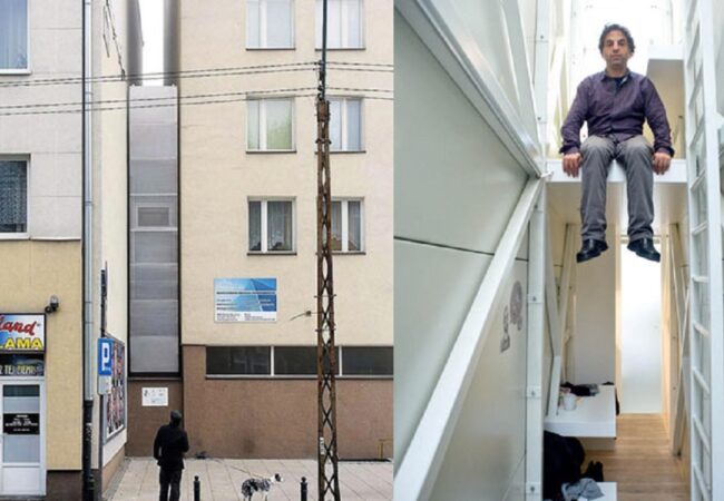 Il varco, largo 92 centimetri nel punto più stretto e 155 nel più largo, è stato sufficiente per incastrarci dentro un abitazione minima, di soli 14 metri quadrati. Una sorta di istallazione chiamata appunto “Keret House” diventata un punto di appoggio per giovani artisti e creativi in visita nella capitale polacca, nonché meta di numerosi turisti.