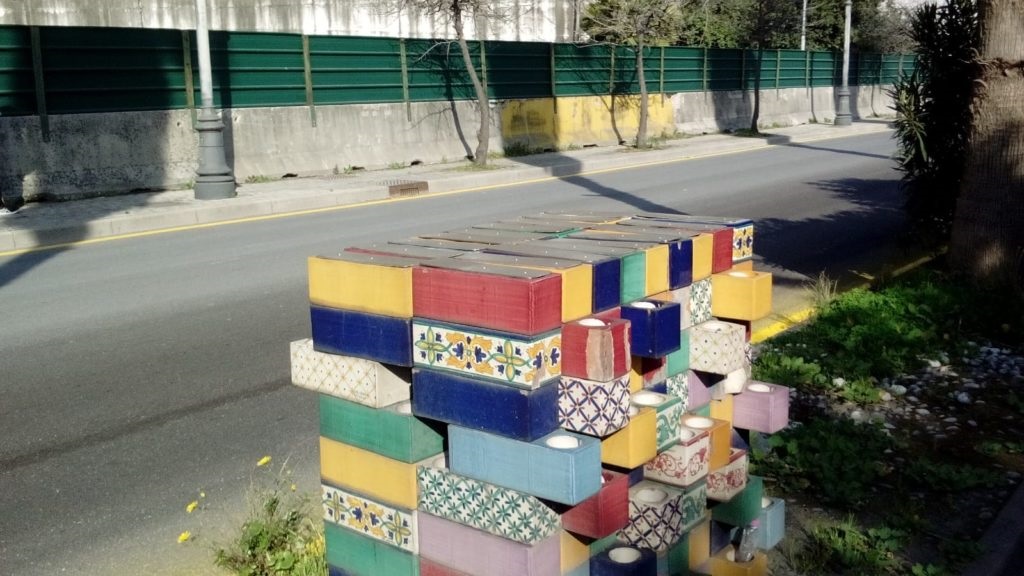 Non credo di essere l’unico ad essermi chiesto cosa sia quel bizzarro parallelepipedo multicolore posizionato in via Ligea, a Salerno, su un’aiuola all’entrata del porto commerciale.