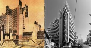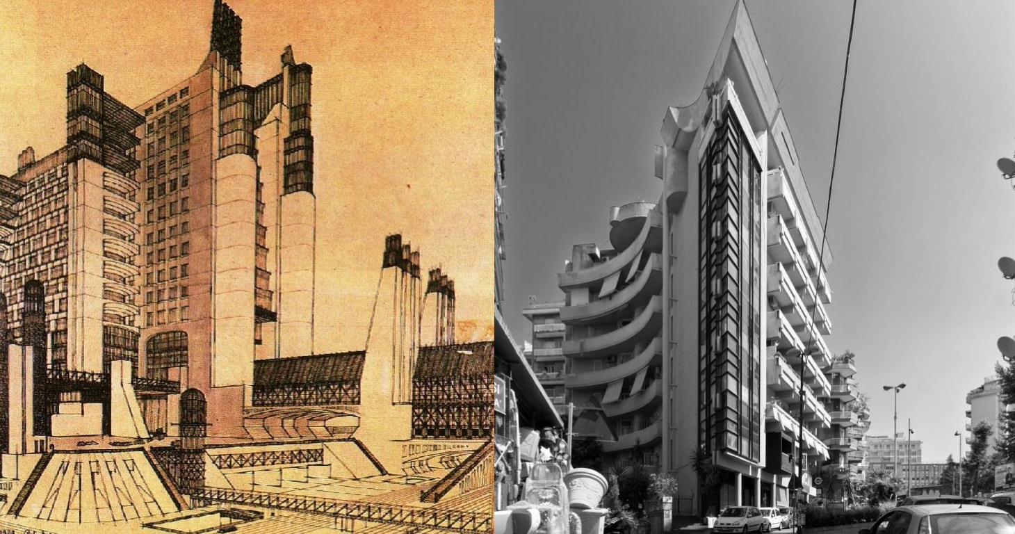 IMMAGINE 1: a sin. “La città Nuova” (A. Sant’Elia,1914) — a dx. Edificio residenziale in via San Giacomo dei Capri-Napoli (A,L. Rossi, 1968)