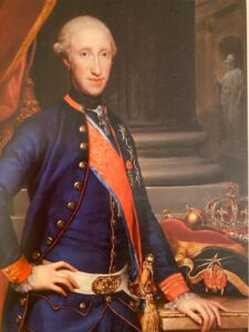 Elisabetta Farnese ambiziosa moglie e madre di augusti Borbone. Fu lei a pretendere la realizzazione della corona. Memorabile il museo archeologico Farnese fortemente voluto da lei. Carlo III grandioso e illuminato monarca che fece costruire la reggia di Caserta, la reggia di Portici, quella di Capodimonte, l’ospedale degli incurabili, il teatro San Carlo, incentivò gli archeologi degli scavi di Pompei e altre meraviglie che resero Napoli capitale europea.